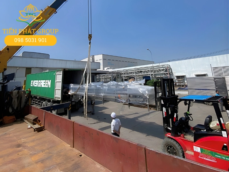 - Rút ruột container máy móc: Thực hiện hạ hàng các loại máy móc công trình, linh kiện điện gió hoặc thiết bị nhà xưởng tại KCN Hòa Phú. Sử dụng kết hợp xe nâng tải trọng 5 tấn, 10 tấn và xe cẩu Kato để đảm bảo an toàn tuyệt đối.