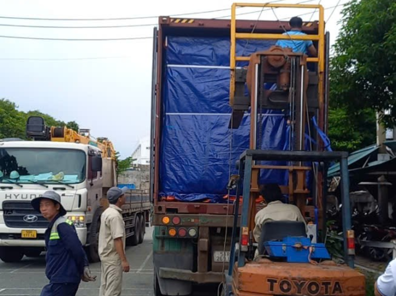 - Với hàng nặng, hàng máy móc cần xe cẩu, sẽ cần đến dịch vụ thuê xe cẩu rút ruột container để đảm bảo an toàn tuyệt đối.