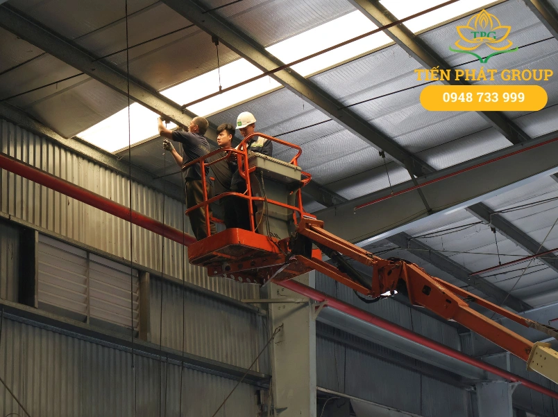 - Xe nâng người sửa chữa điện, bảo dưỡng hệ thống điện, PCCC, ống gió, dầm, kết cấu trần nhà xưởng.