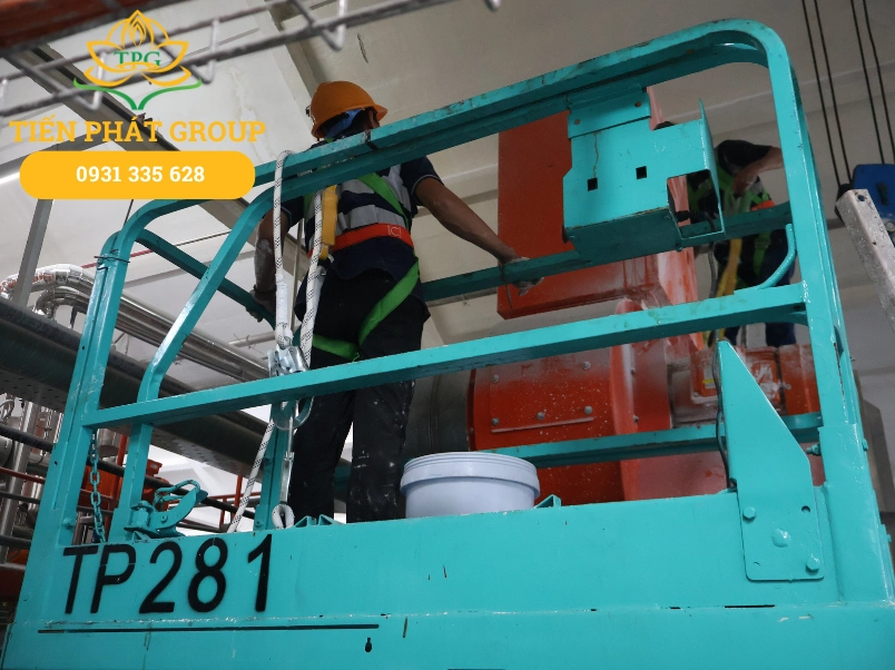 - Thiết bị sử dụng: 06 Xe nâng cắt kéo điện 10m – 12m (JLG & Sinoboom).