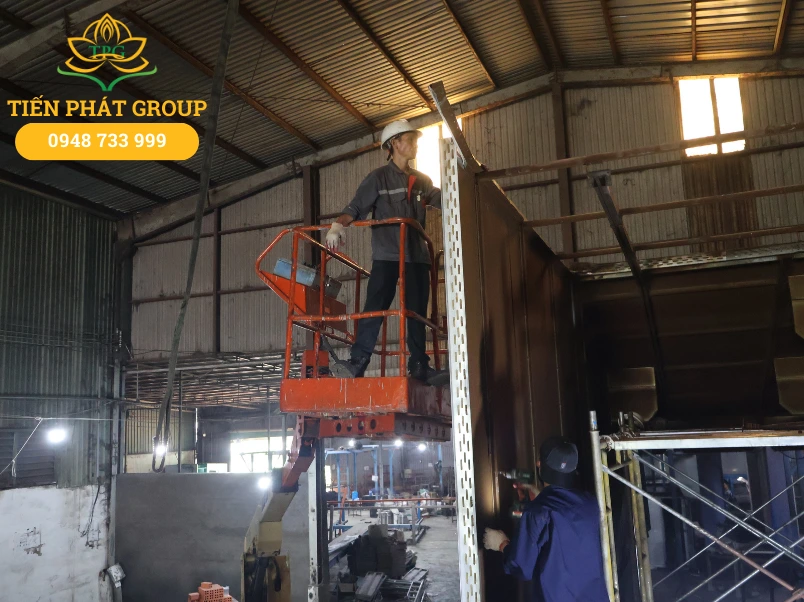 - Xây dựng & Lắp dựng: Cẩu ráp và gia cố kết cấu thép, thay mới hệ thống mái tôn, thi công vách ngăn cách nhiệt.